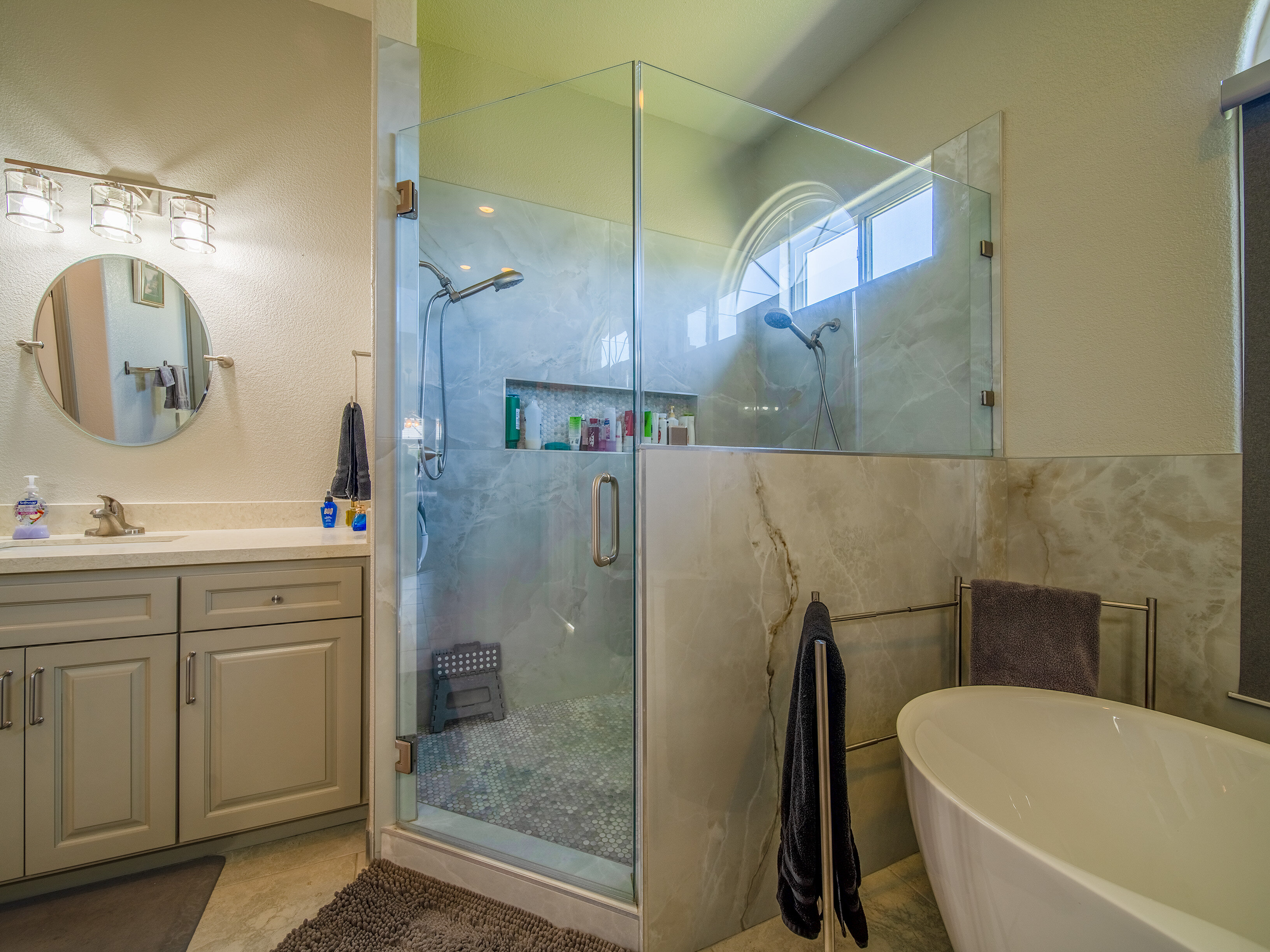 - New Custom Master Shower with dual shower heads.